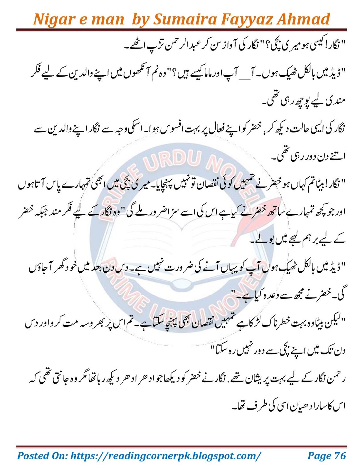 Nigar e man novel by Sumaira Fayyaz Ahmed