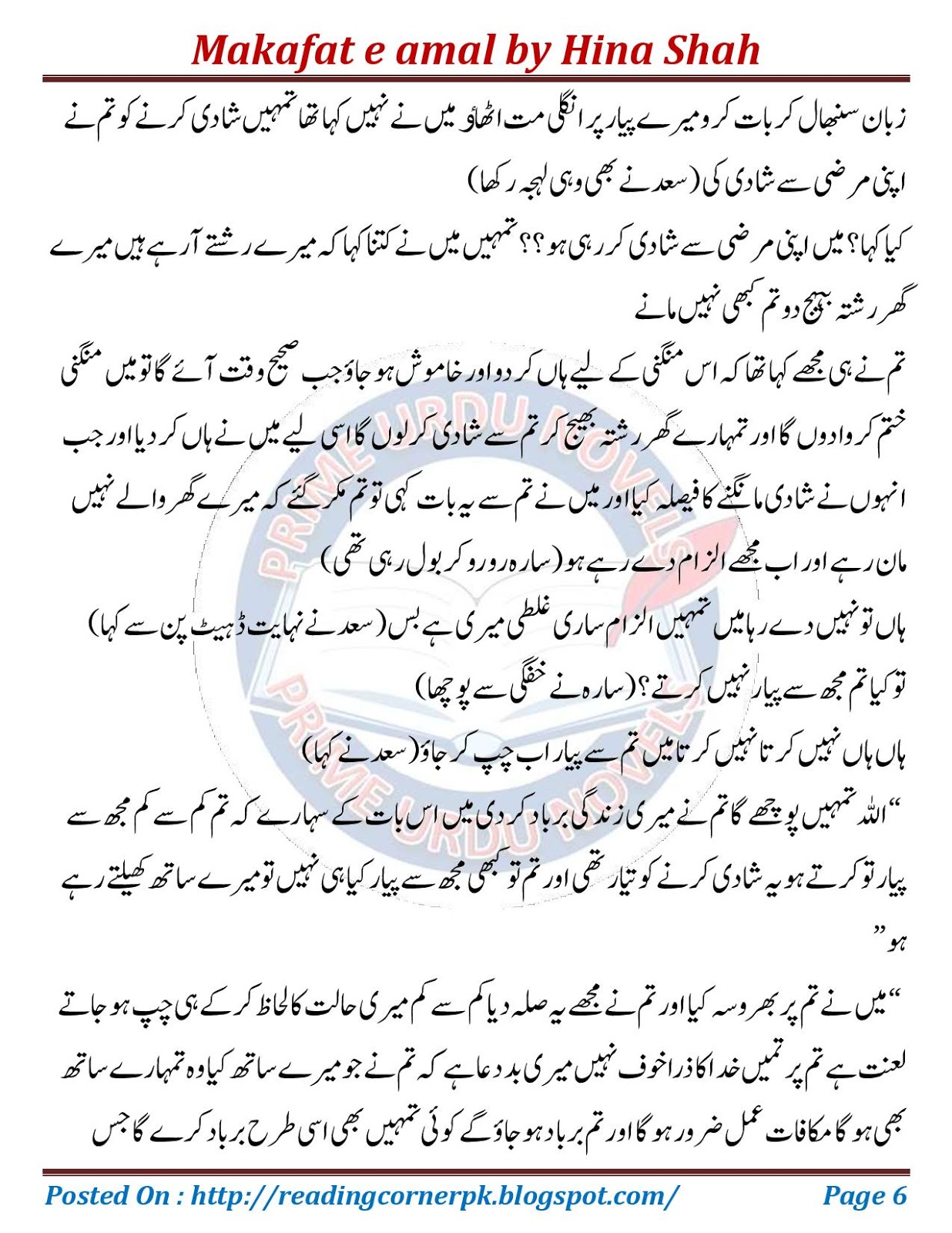 Makafat e amal novel by Hina Shah Episode 1 PDF
