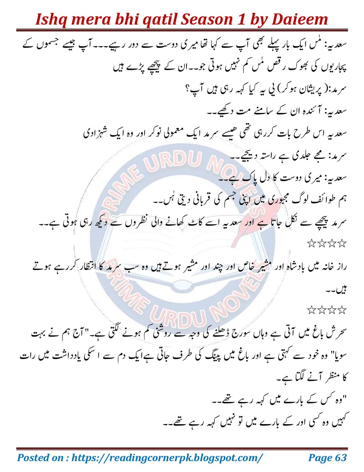 Ishq mera bhi qatil Season 1 novel by Daieem