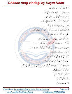 Dhanak rang zindagi novel by Hayat Khan Complete PDF