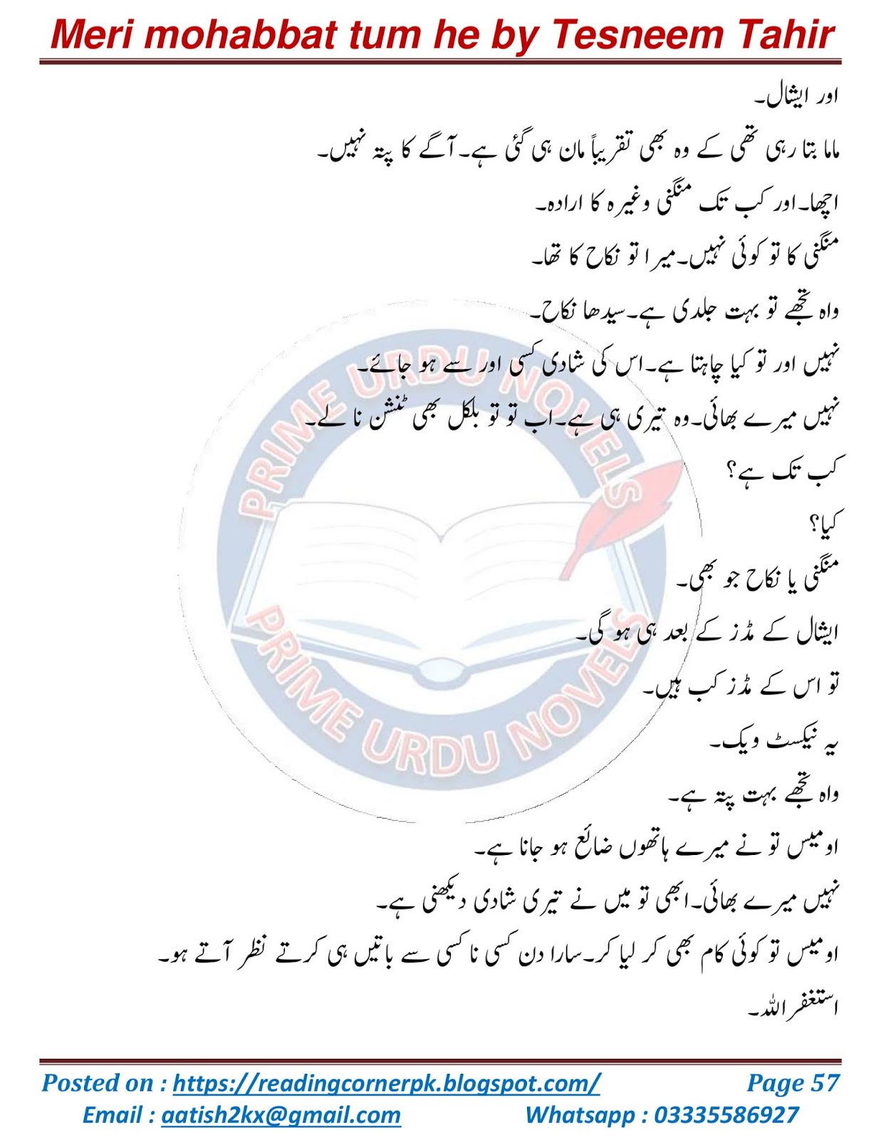 Meri mohabbat tum he novel by Tesneem Tahir Complete PDF