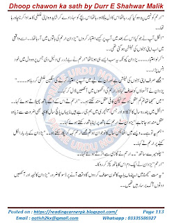 Dhoop chawon ka sath by Durr E Shahwaar Malik Complete PDF