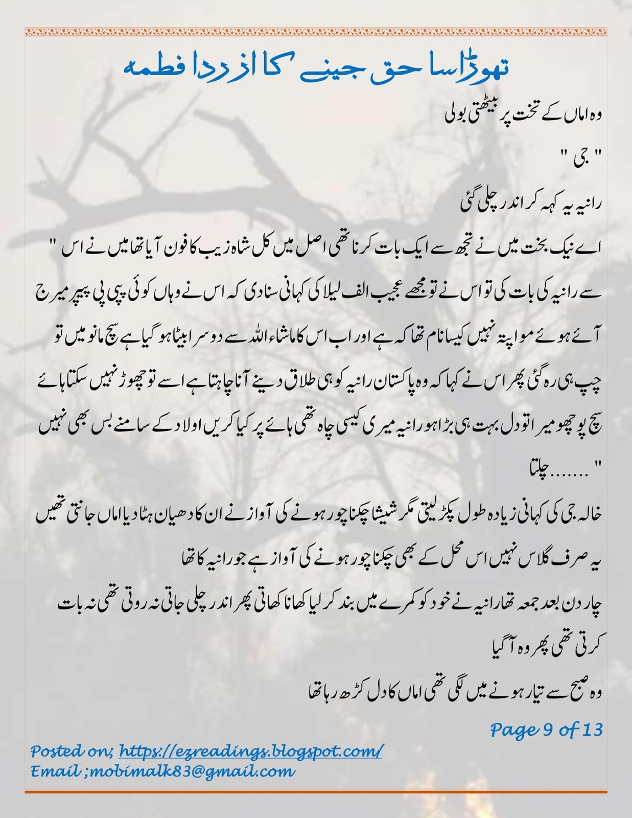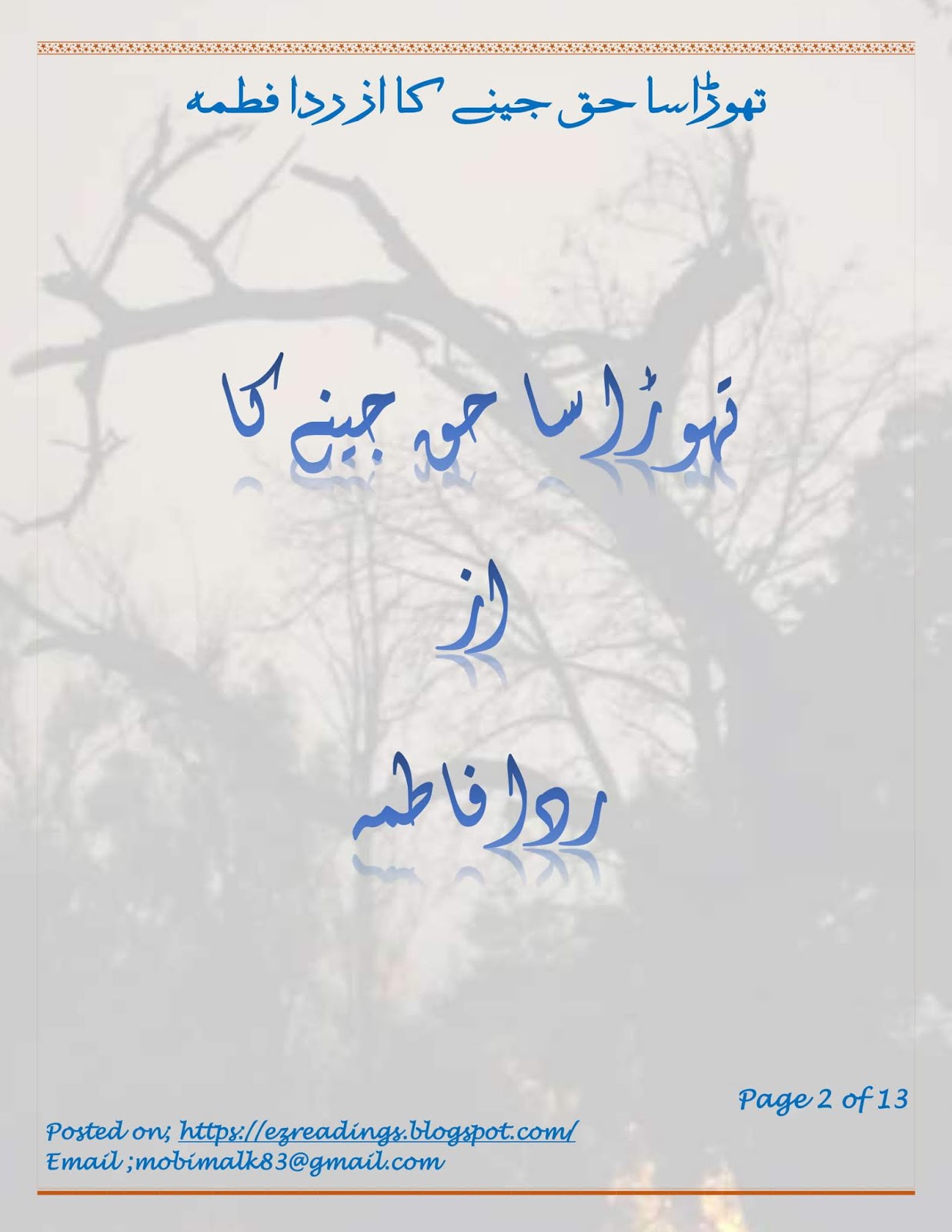 Thora sa haq jeeny ka by Rida Fatima Chapter 5 PDF