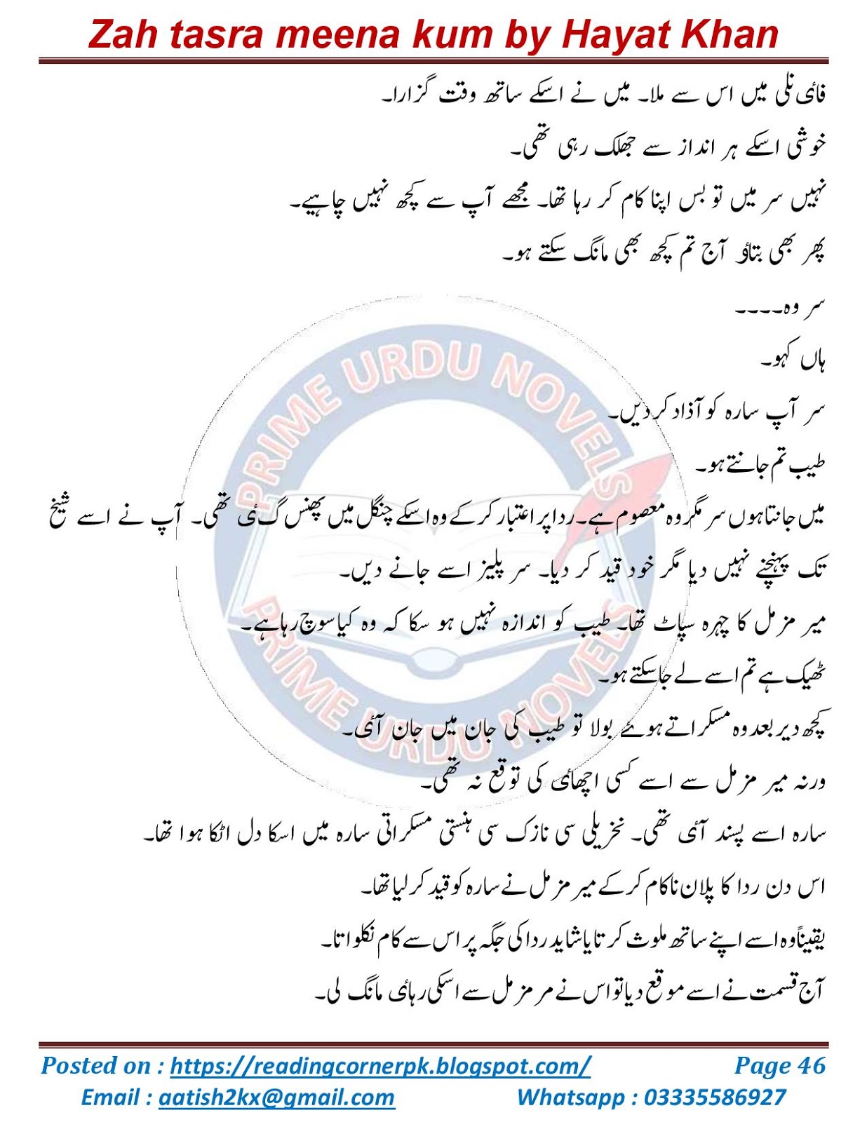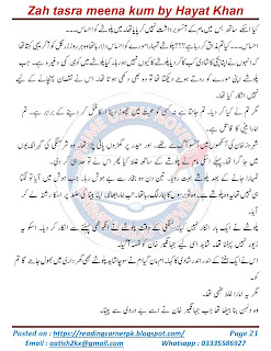 Zah tasra meena kum novel by Hayat Khan