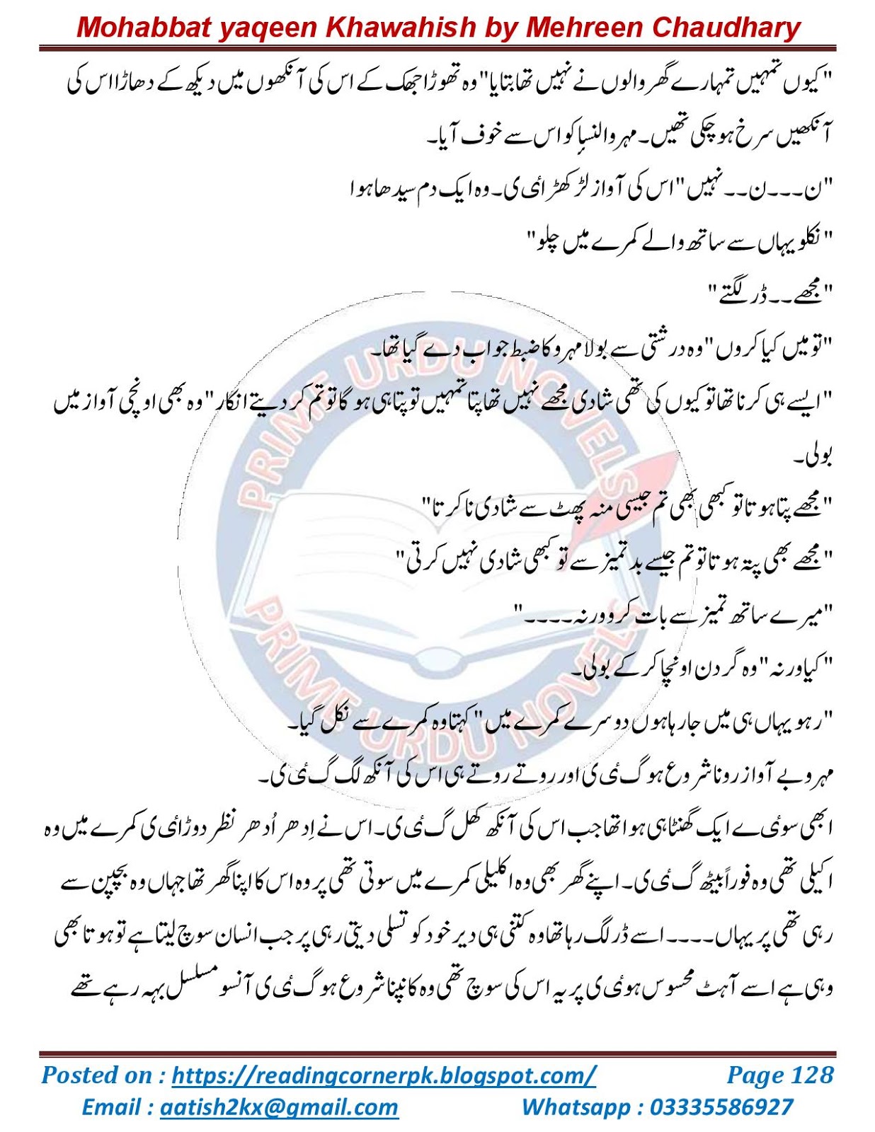 Mohabbat yaqeen khawahish by Mehreen Chaudhary