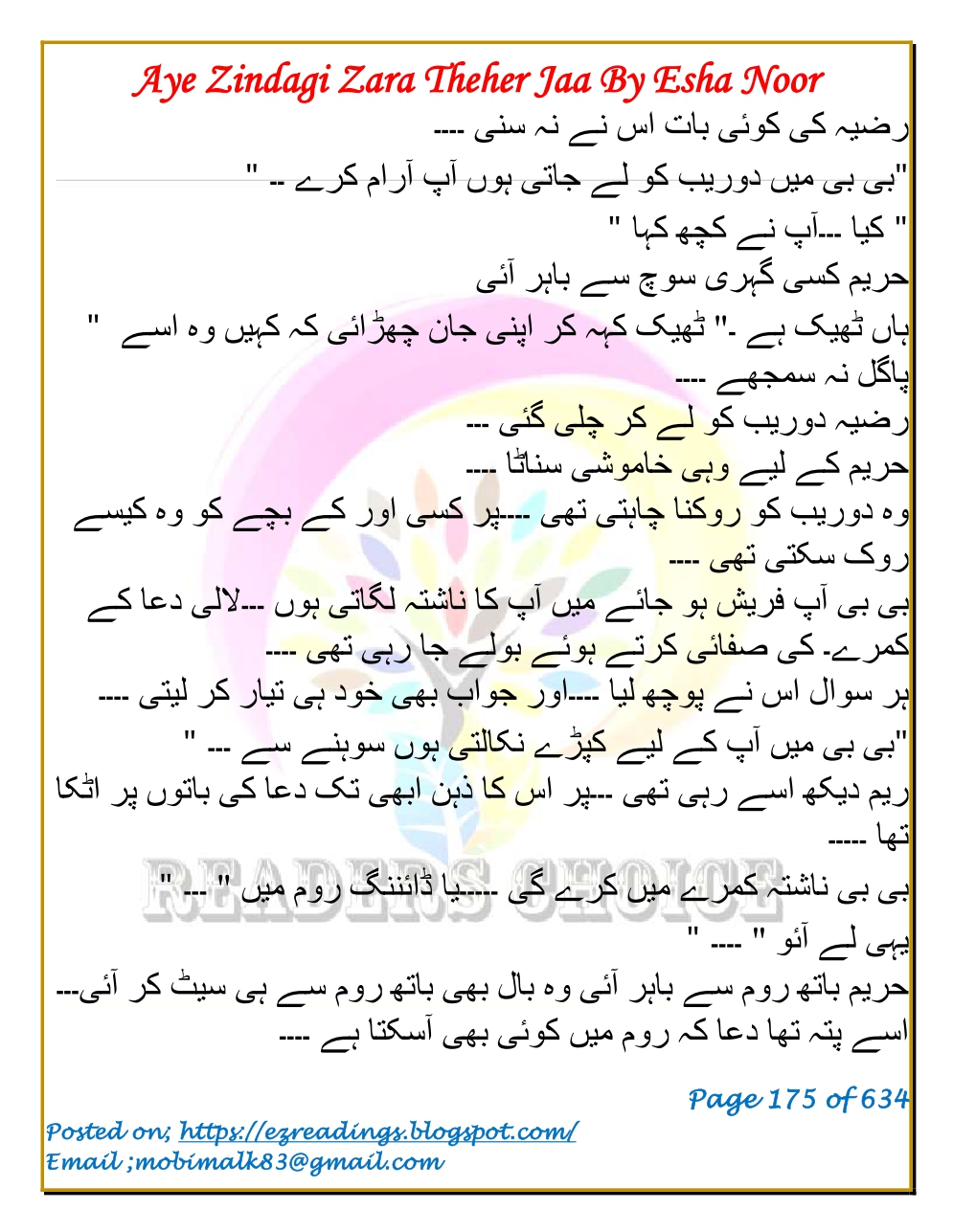 Aye zindagi zara theher ja by Esha Noor Complete PDF