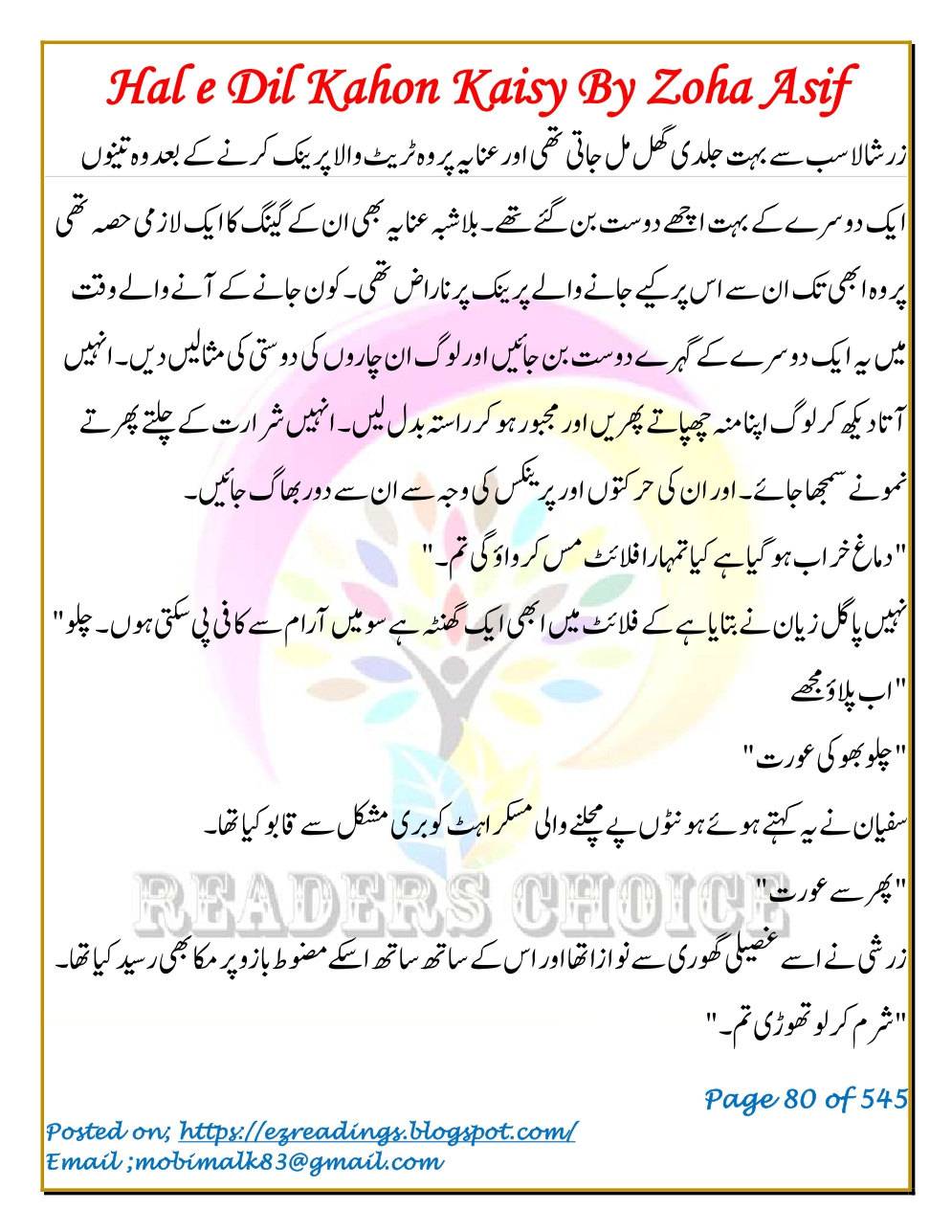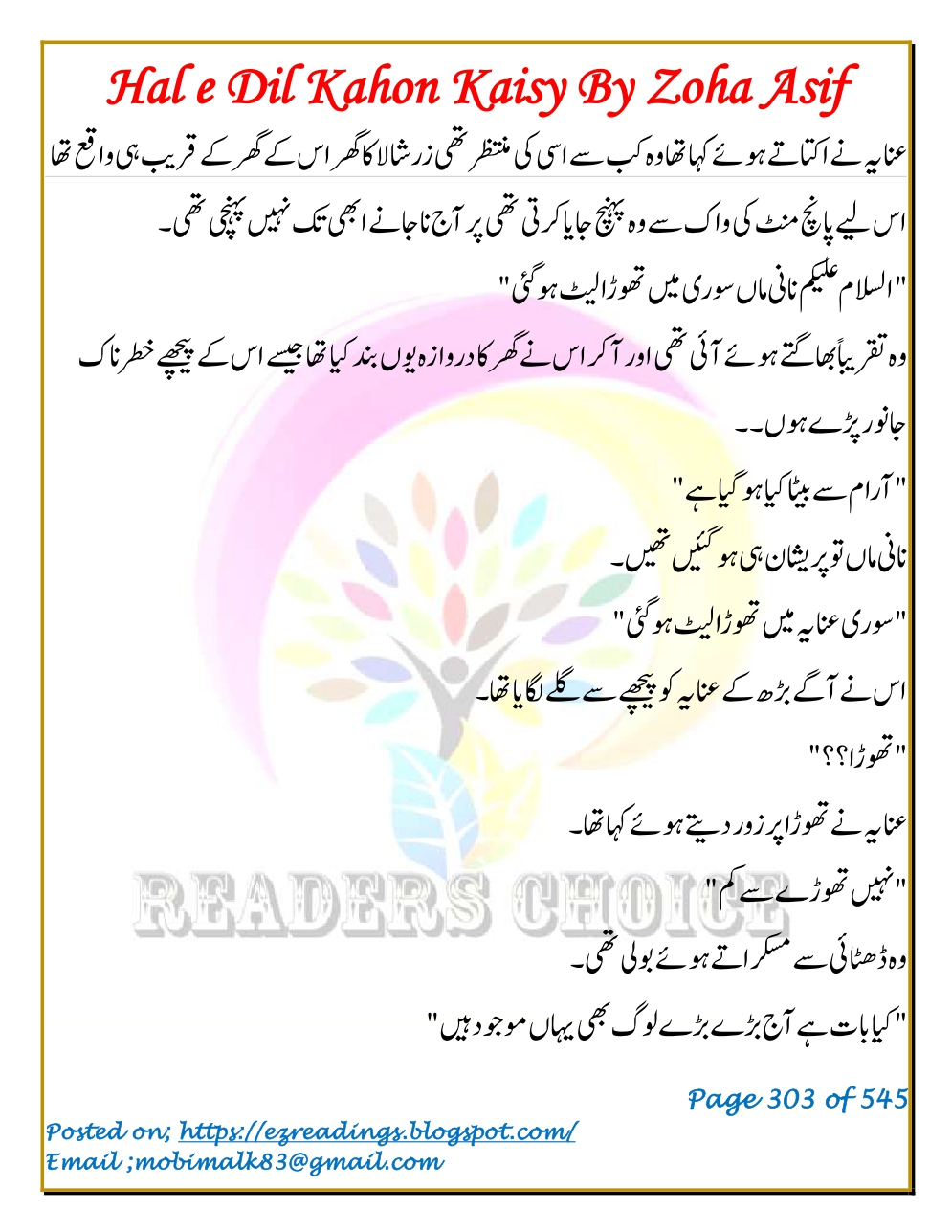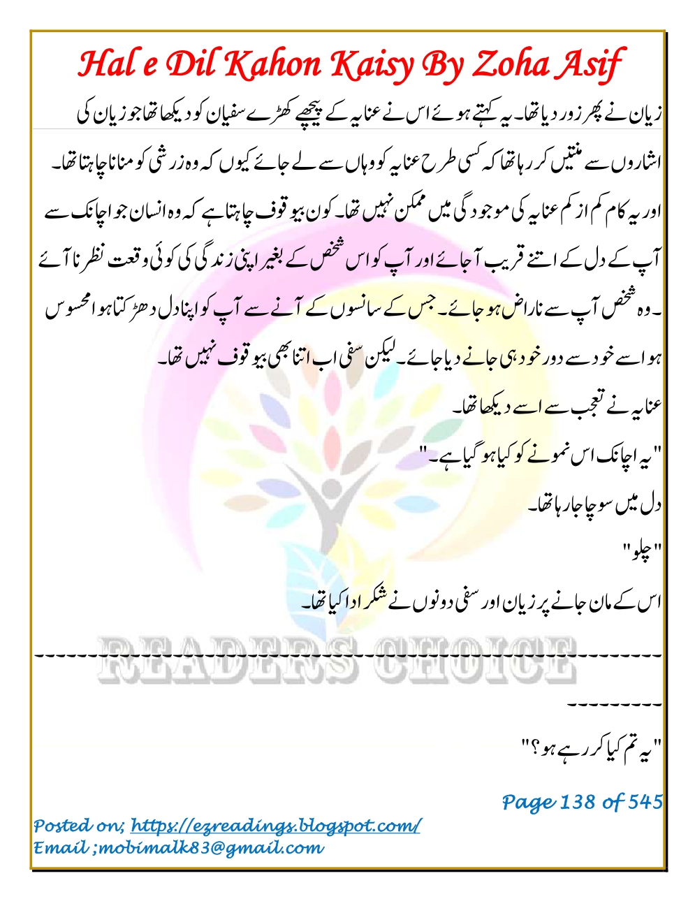 Haal e dil kahon kaisy by Zoha Asif Complete PDF