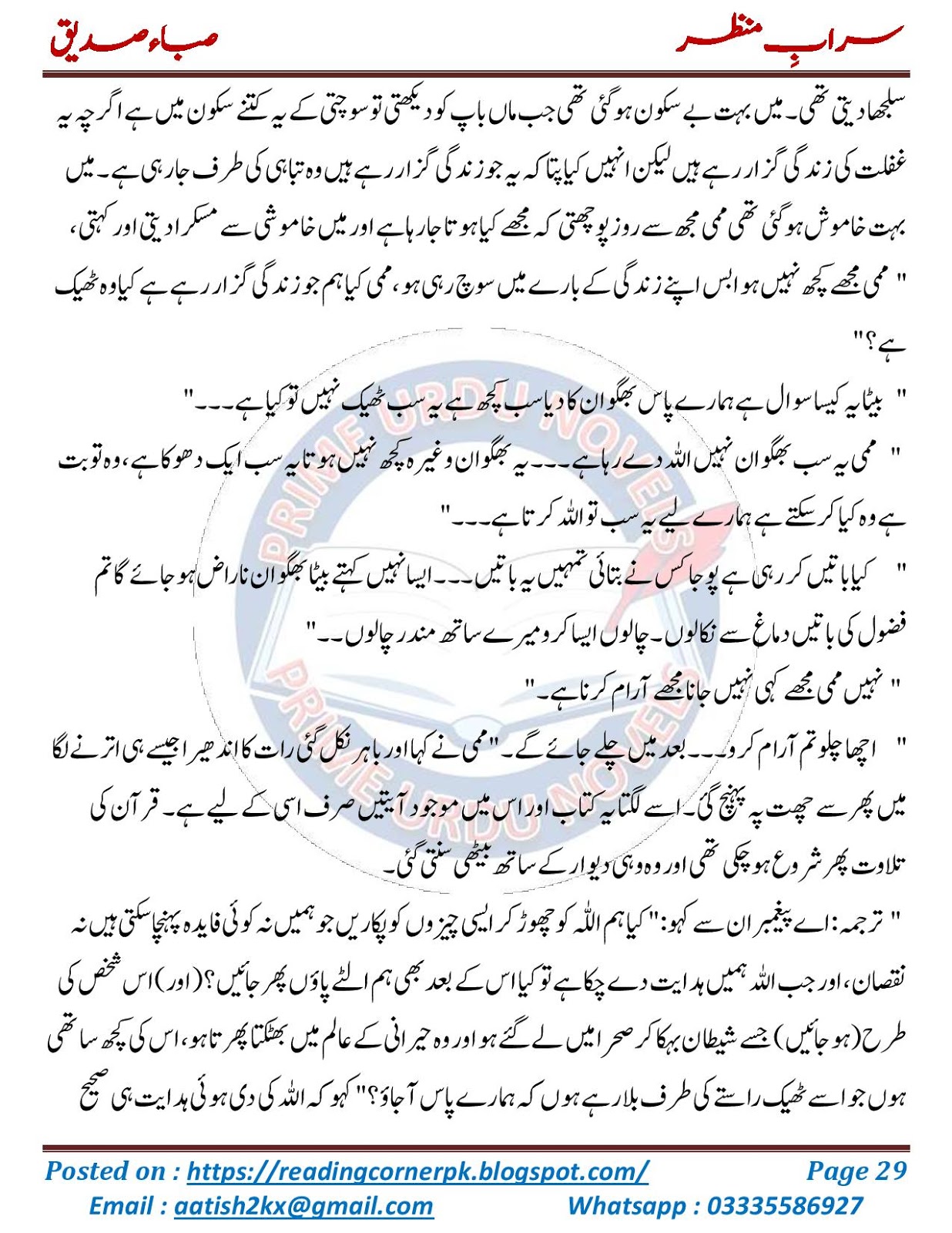 Sarab e manzar novel by Saba Siddique Complete PDF