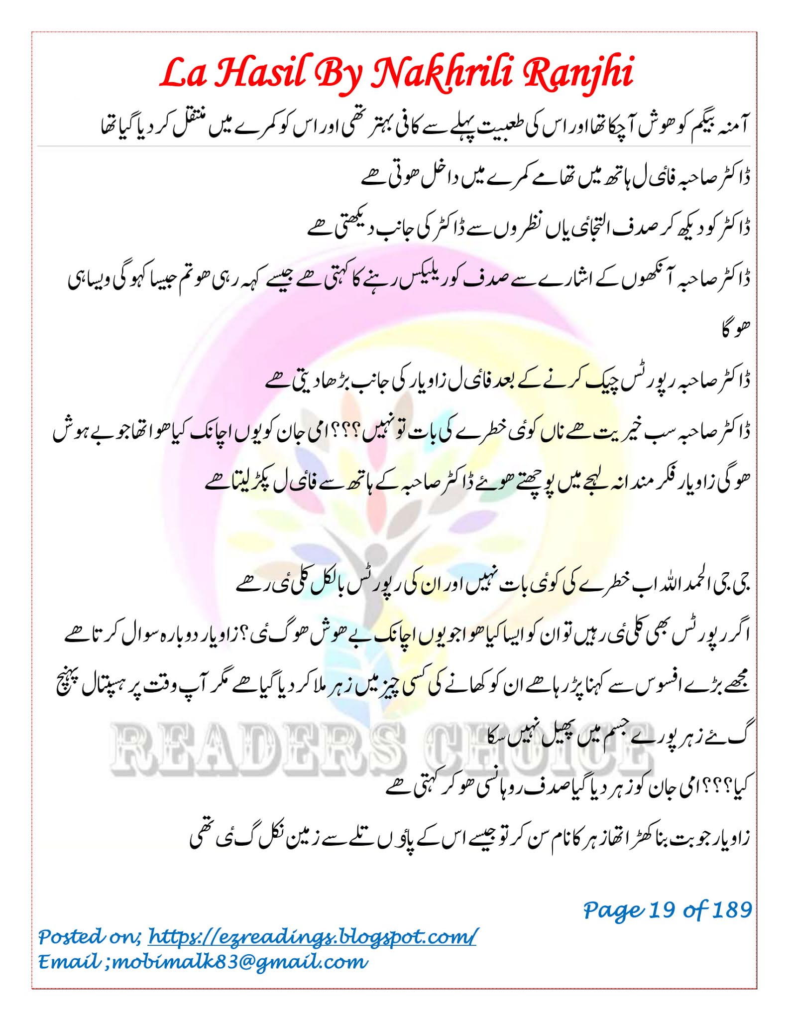 La hasil novel By Nakhreli Ranjhi Complete PDF