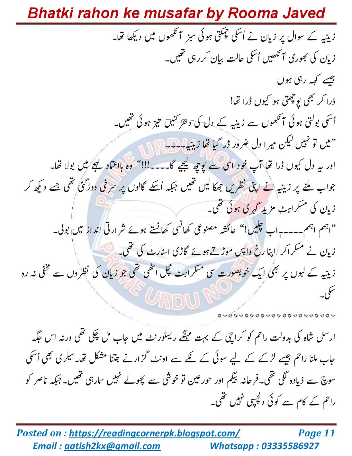 Bhatki rahon ke musafar novel by Rooma Javed