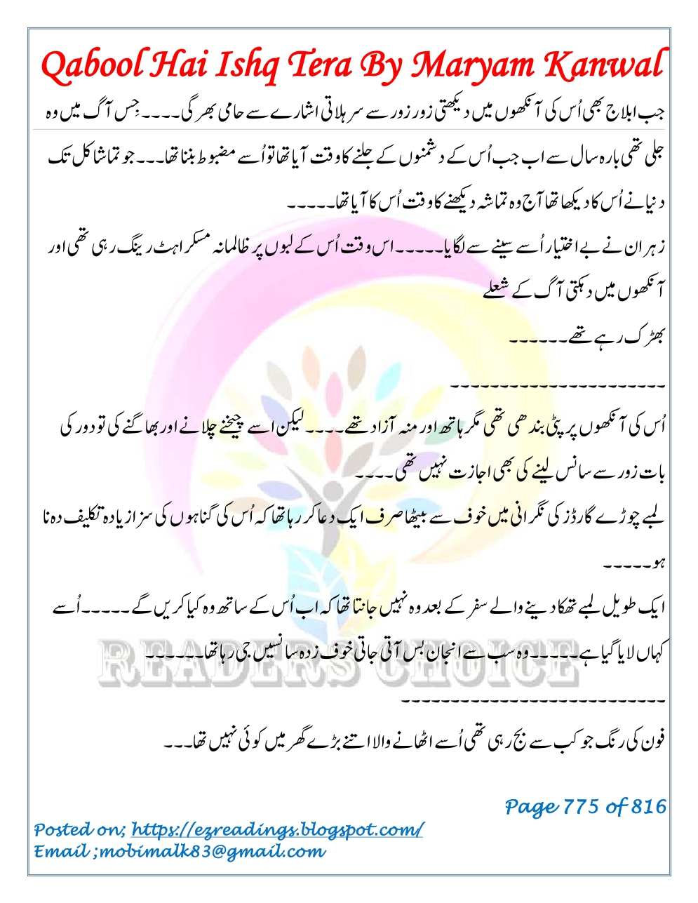 Qabool hai ishq tera by Maryam Kanwal Complete PDF