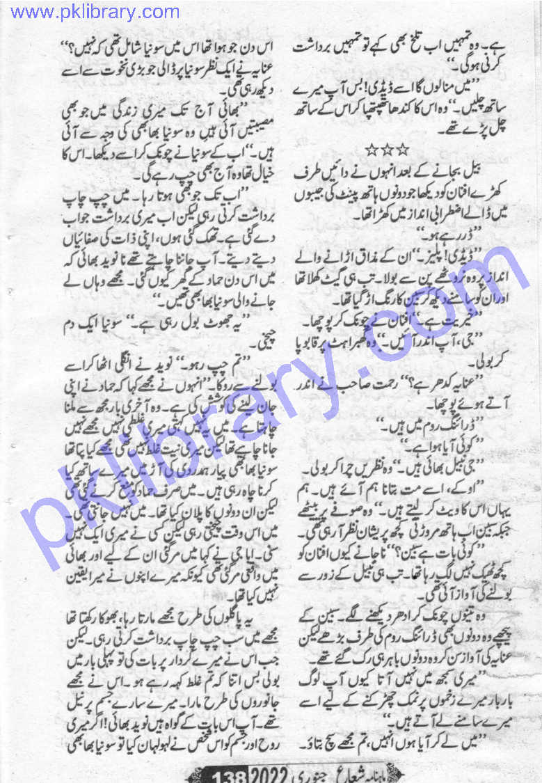 - is a social romantic novel by the writer as she has written many novels. The novel is based on romantic Urdu novels in which She pointed out our social and family issues.